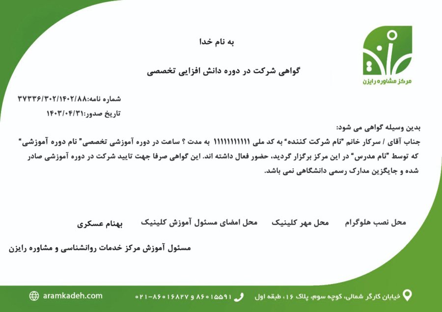 گواهی از: مرکز مشاوره رایزن با مجوز سازمان نظام روانشناسی